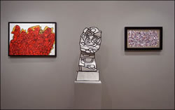 Probably the most important pieces created by Dubuffet are part of his Hourloupe series. This series began as a collection of drawings done with a ballpoint pen, though the series gradually evolved to include felt-tip pen drawings. Dubuffet arbitrarily restricted himself to a palette of red, white, blue, and black, making the function of color non-expressionist.